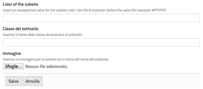 - Pannello di controllo dove impostare stili aggiuntivi per il sottosito