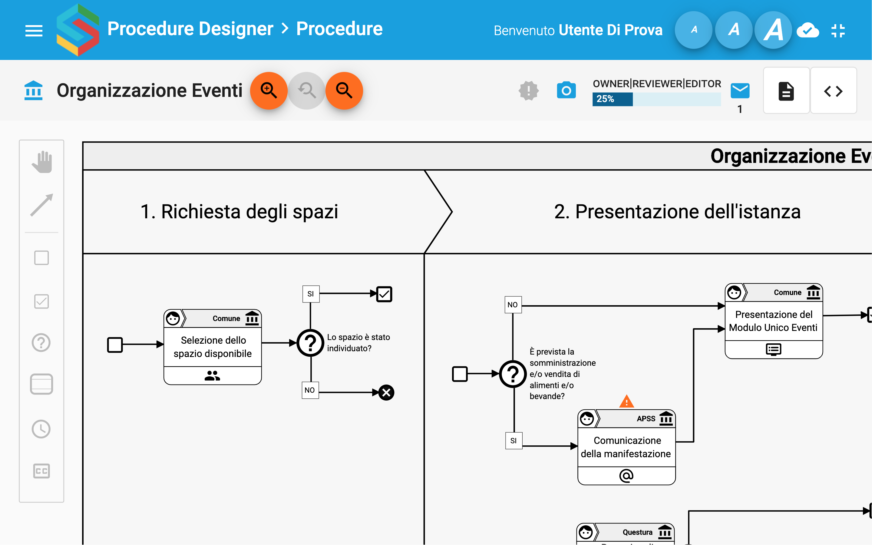 Il Collaborative Procedure Design (CPD) consente al cittadino di consultare una rappresentazione grafica (diagramma) di una procedura amministrativa e al funzionario pubblico di collaborare alla definizione del diagramma di una procedura amministrativa. Il cittadino può accedere al CPD per visualizzare la rappresentazione grafica di una procedura amministrativa e per ottenere informazioni su: