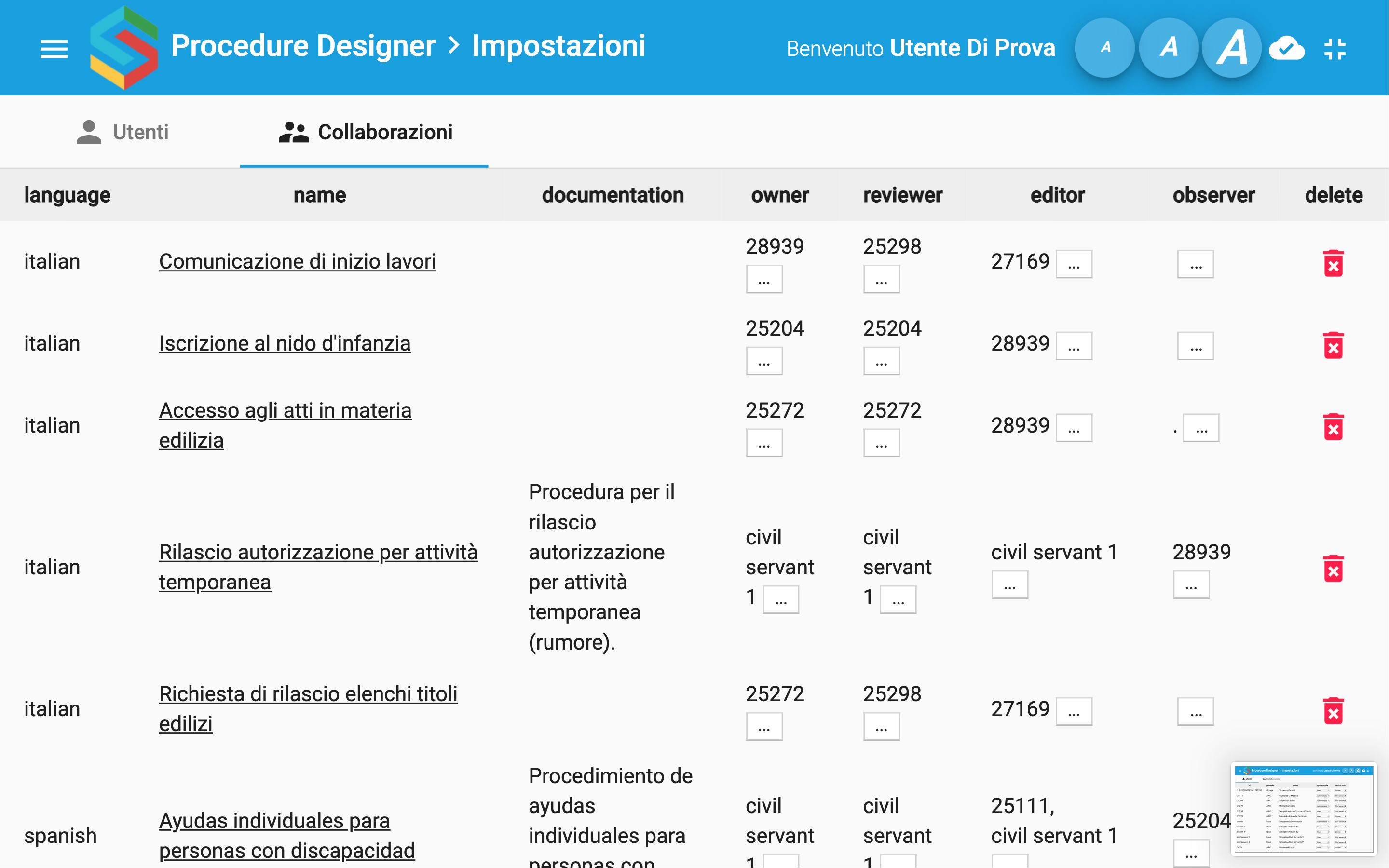 Inoltre, il cittadino ha la facoltà di inoltrare all'amministratore, su qualsiasi elemento grafico del diagramma, domande, commenti e suggerimenti. Il funzionario accede a un ricco insieme di strumenti grafici che gli consente di disegnare i blocchi costituenti di una procedura amministrativa intesa come flusso di comunicazioni Ente-cittadino, ciascuna delle quali coinvolge il cittadino e la pubblica amministrazione. I casi d'uso tipici del CPD sono, per tipologia d'utente, i seguenti: