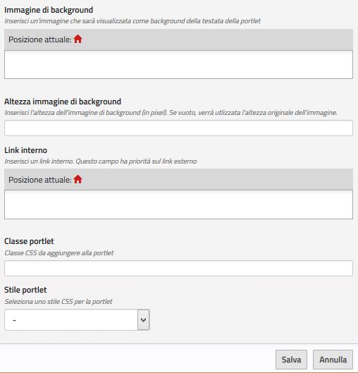 Ci sono due campi che permettono di aggiungere un'immagine di sfondo nella testata della portlet. L'immagine verrà impostata come "background-image" nello stile della testata della portlet.