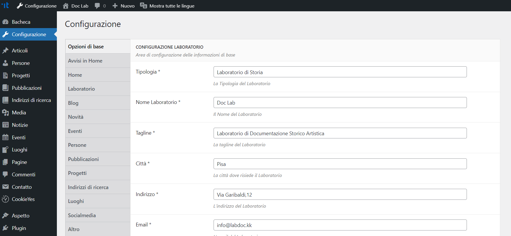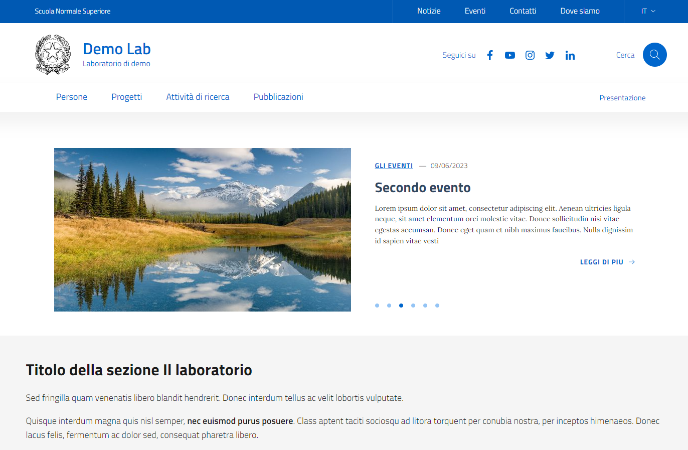 - Gestione delle news e degli eventi del laboratorio.