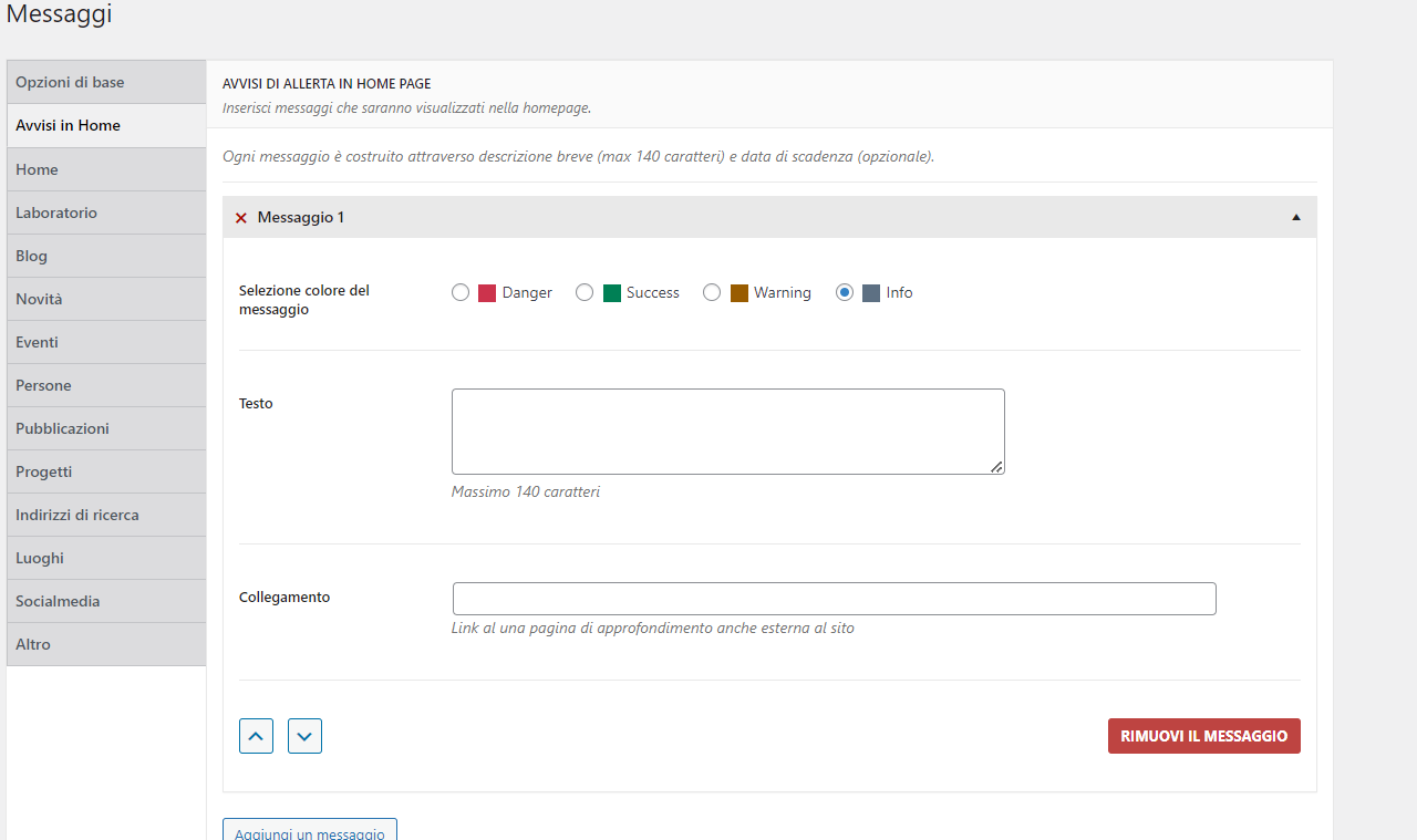 - Gestione degli avvisi in home page.