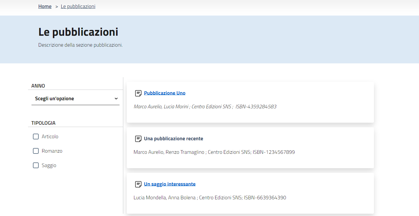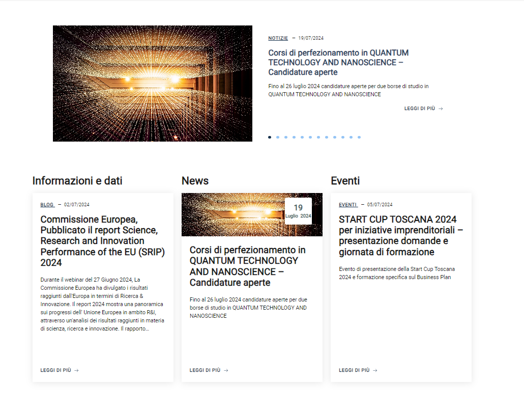 - Gestione sezioni eventi, news e pubblicazioni in home page.