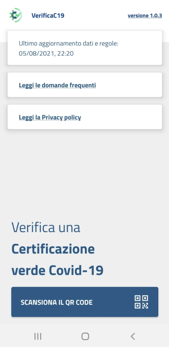 VerificaC19 is the official app of the Italian government for enable operators to verify COVID-19 Green Certificates.