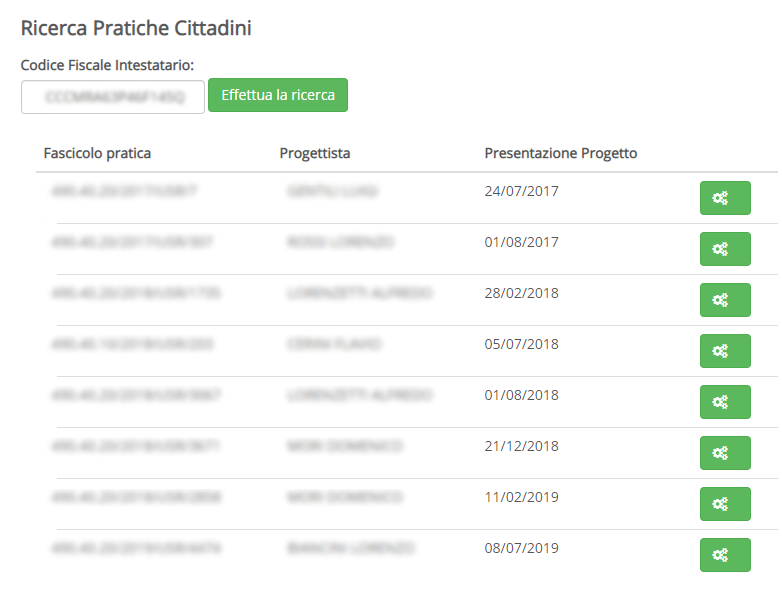 - ricerca pratiche USR per codice fiscale del cittadino intestatario